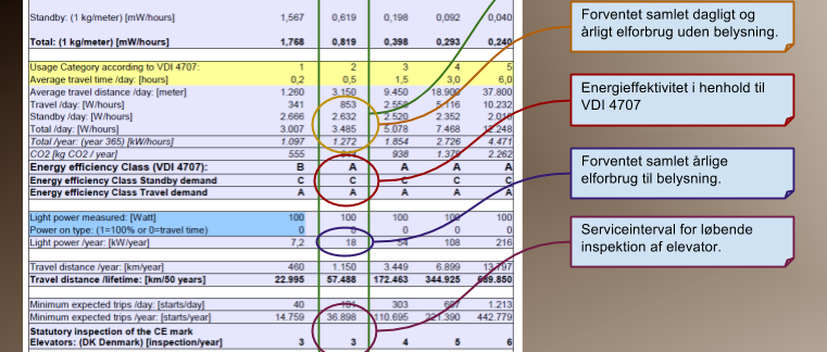 “Før ibrugtagningen af elevatorer skal der gennemføres en funktionsafprøvning af energiforbruget, som efterfølgende skal dokumenteres i en rapport. Måling af energiforbruget kan med fordel ske i forbindelse med slutinspektion iht. Arbejdstilsynets regler. Der henvises her til Trafik- Bygge- og Boligstyrelsens vejledning om funktionsafprøvning, jf. bygningsreglementet 2018, § 249.”